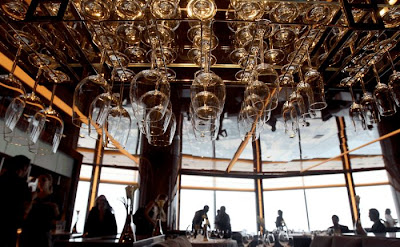 The restaurant Atmosphere is the world's highest restaurant. It is located 1,350 feet up from the ground floor of Burj Khalifa, the tallest building in the world, built in Dubai.